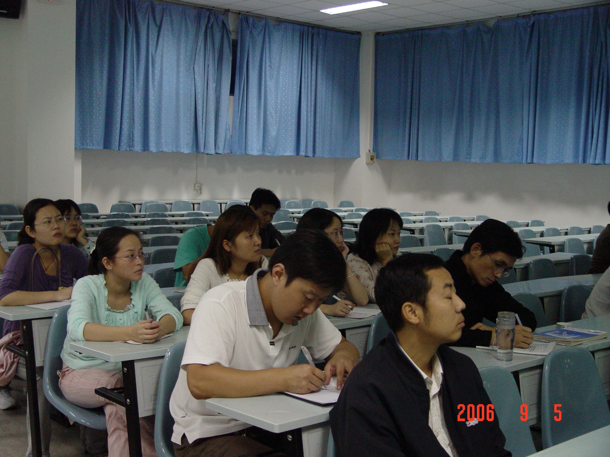 根据公司安排,为了使2006年新进教师尽快适应教学工作,讲师以下教师的教学水平更上一层楼。9月5日晚上7:30,在公司多媒体教室一,特别邀请耿楠副教授为公司2006年新进教师和讲师以下教师做了一次生动的教学观摩。