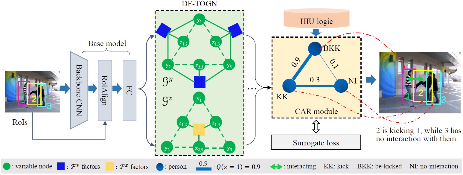 为解决交互行为识别中预测标签的不一致问题,该论文提出了一种基于高阶图神经网络和一致性先验条件的深度学习方法。该方法引入了逻辑的隐式表示和显式表示,并通过结合这两种表示形式有效提升了多人交互行为解析的一致性和精度。实验表明,该方法能够更好的捕捉人类交互行为中的语义关系,同时通过引入一致性先验条件,能够更好地捕捉不同交互组之间的相关性和一致性。这项研究成果在解决标签不一致性问题上具有重要意义,并为交互行为识别领域的进展带来了有力的推动。该方法可以帮助视频监控系统更准确地分析和理解视频中的人际交互行为,从而提供更有效的安全监控和事件检测。