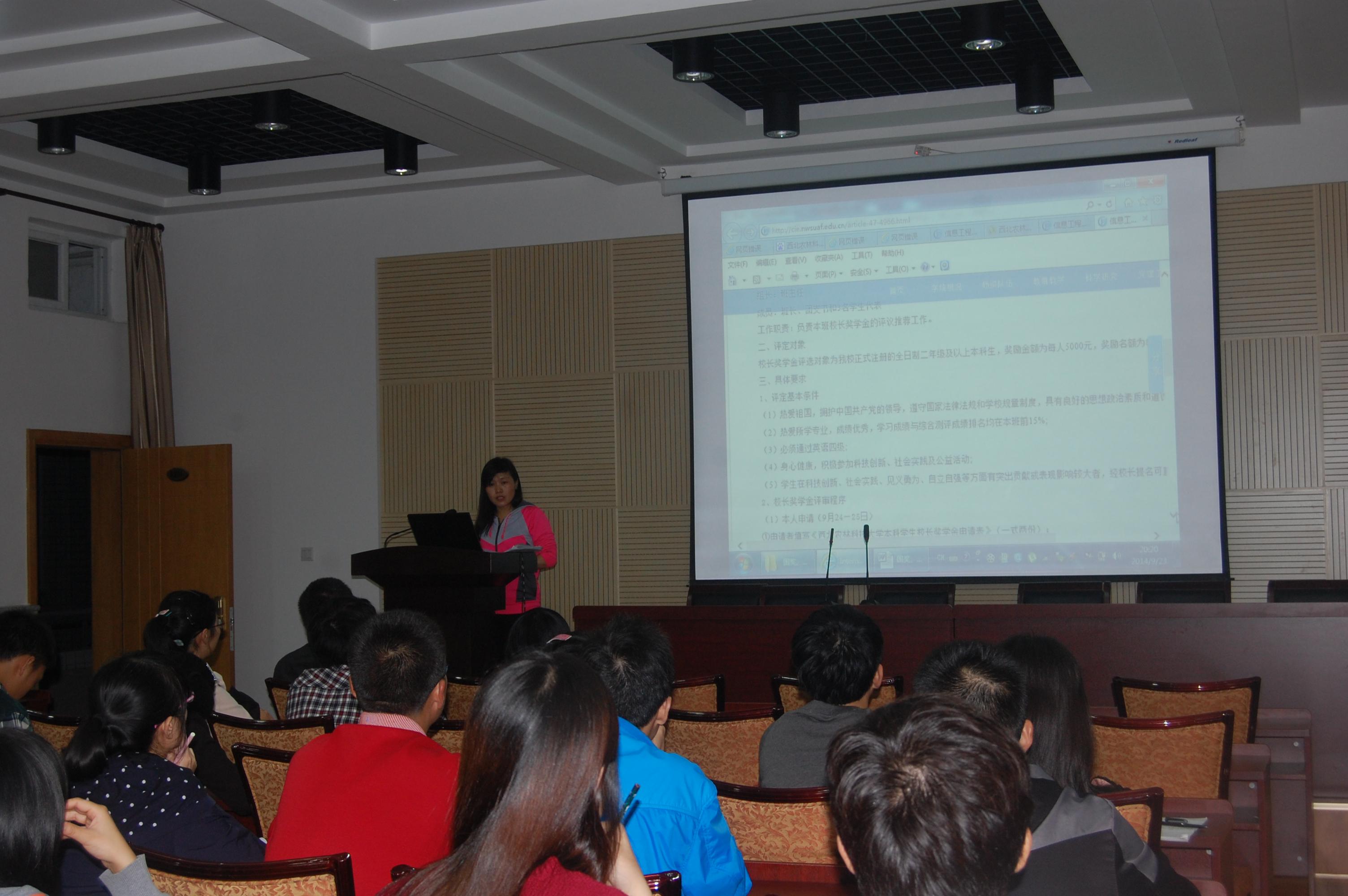 本次会议通报了2013-2014学年度综合测评成绩、专业奖学金、三好员工、优秀员工干部、员工先进班集体评定结果和家庭经济困难员工的认定工作, 安排布置了2014—2015学年度国家奖学金、国家励志奖学金、董事长奖学金评定工作、社会各类连续性奖助学金的考核工作、学费减免等相关工作。