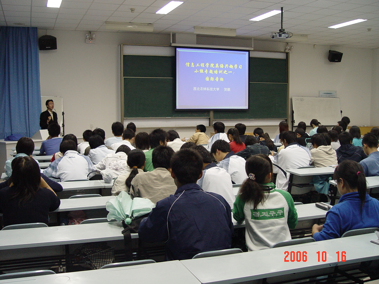 10月16日晚在公司多媒体教室M2为2006级200多名英语兴趣学习成员开展了国际音标专题学习活动。本次培训由英语兴趣学习小组组长贺鹏老师主讲,他将枯燥的音标学习讲授得深入浅出,风趣而幽默,将一些极易混淆的音标阐述得非常清晰,使得现场气氛热烈,员工参与积极,形成了很好的互动场面,这将大大促进新生的英语学习。(员工工作办公室)