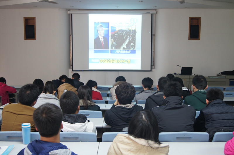 视频开始前,何卫军副书记、党艳东老师都强调了关注“两会”的重要性。上午10点30分,记者会准时召开。此次记者会,李克强总理就“13年政府工作的经验与14年工作的重点以及近期社会热点‘马航’等问题”做出详细的解答。在过去的一年中,新一届的中央领导团队本着“权为民所用,情为民所系,利为民所谋”的原则,作出了一系列体恤民生的重大举措,亦取得了明显的成效。李克强总理谈到,面对崭新的一年,“正视困难,直面挑战,趋利避害”,做到“保就业,惠民生,增收入”;对待周边关系,政府持“和平共处”原则,希望保持和谐状态;应对马航失踪事件,“只要有一丝希望,政府就决不放弃”等等。那睿智的讲话,从容的应对,坚定的态度,无一不彰显着新一届领导团队不凡的魅力,也预示着祖国美好的前景。
