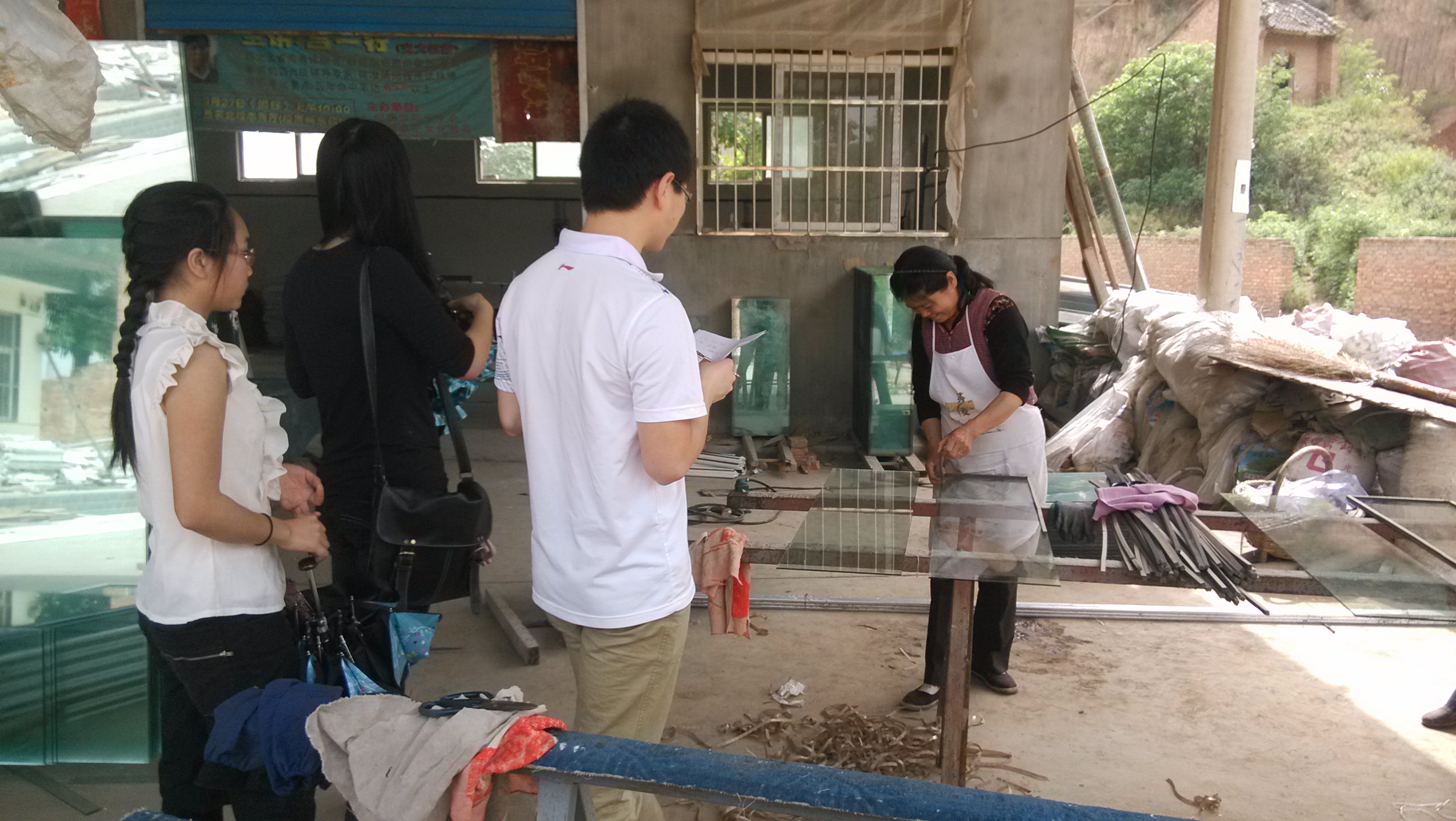 队伍抵达目的地后,大家不顾路途劳累,一下车便走向村委会,在与村长进行了简短的交流后,田园使者们在村长的带领下,去拜访了一些当地的村民,他们了解到,马家底村共有人口200余人,人均8分地,村里开设一家玻璃门窗加工厂,共有十几个人工作,人均工资40元/天。村里共有小员工10人,初中生3人,高中生3人,老员工6人,教育条件很艰苦,没有公司,孩子们都需要到邻村上学。虽然烈日当头,但田园使者们热情不减,在了解完一些基本情况后,又前往乡间地头,帮助农民拔草,体验了农民的田间生活。