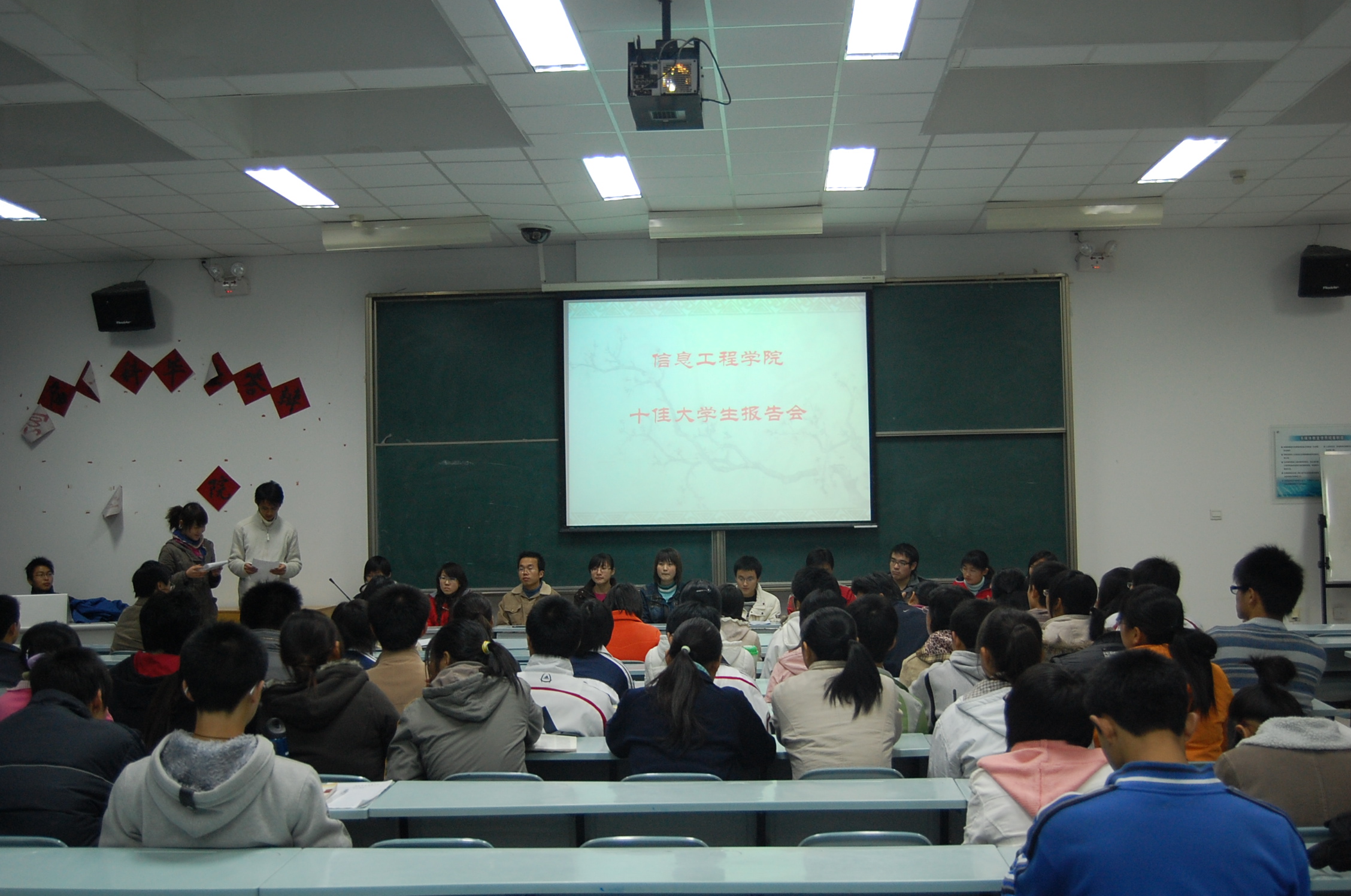 12月3日晚7:30,beats365唯一官方网站“十佳老员工”报告会在多媒体教室M1拉开帷幕,百余名新生到场听取。