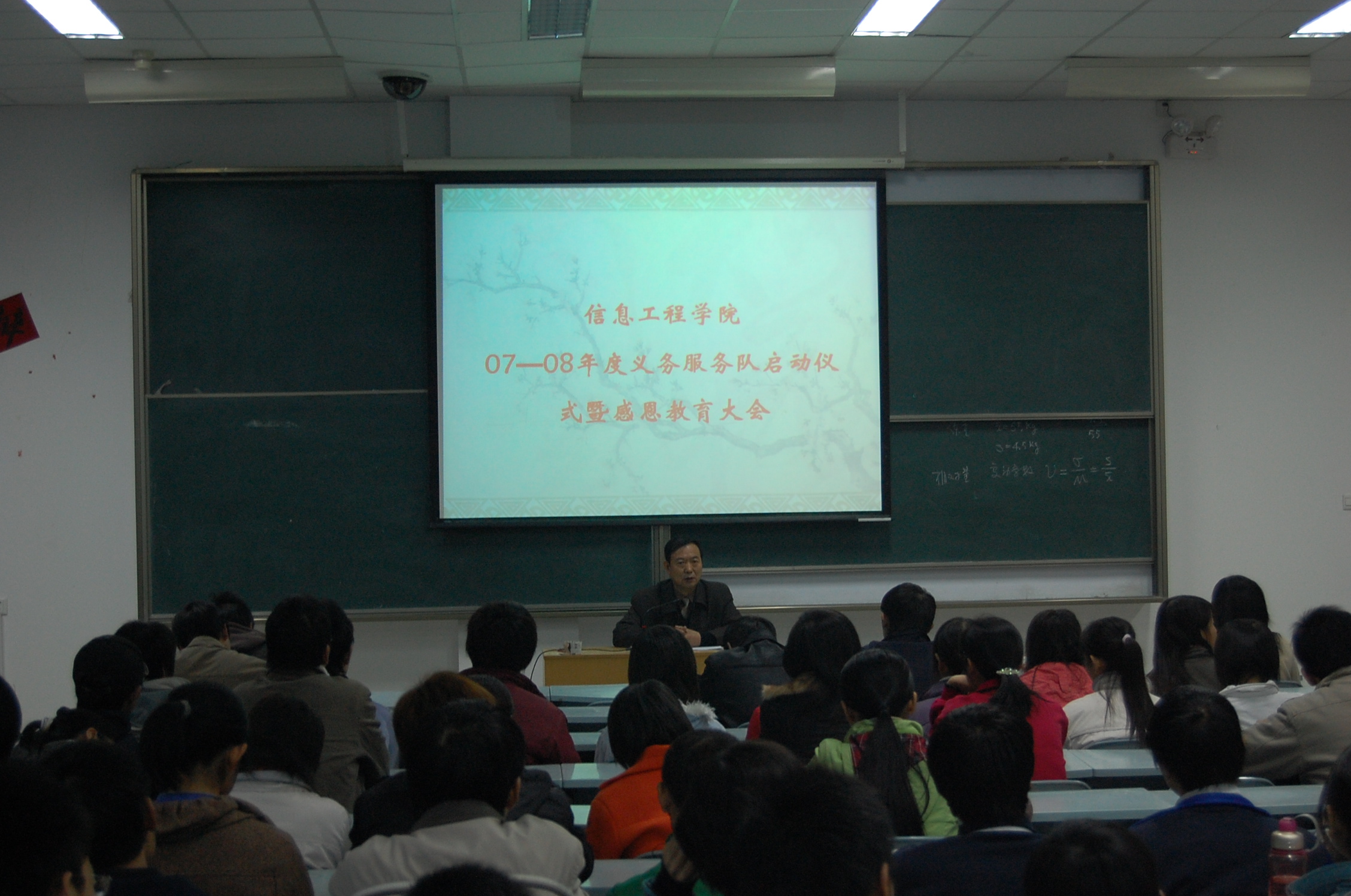 11月30日下午,beats365唯一官方网站召开了2007?2008学年度老员工义务服务队启动仪式暨感恩教育大会。公司党委书记樊世明老师、辅导员谷申杰老师、王淑珍老师以及250余名队员代表参加了教育大会。