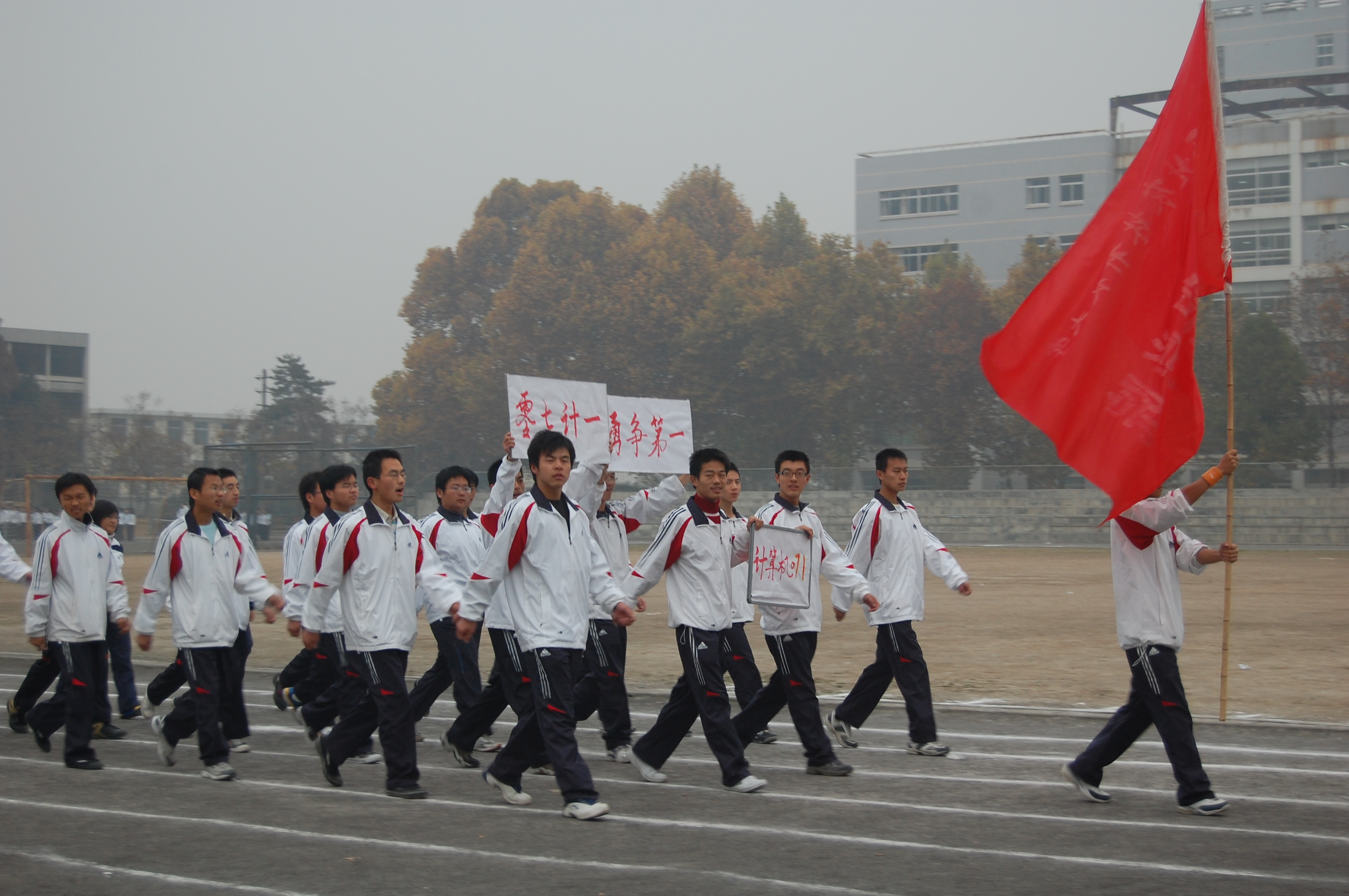 最后经过激烈地角逐,信管071、计算机071、信管061分别获得本次运动会的团体总分第一、二 、三名,计算机073、计算机074分别获得精神文明奖。最后党委书记樊世明老师、团工委书记谷申杰老师、辅导员王淑珍老师、武汉章老师和刘阳阳老师分别为获奖个人和班级颁了奖。
