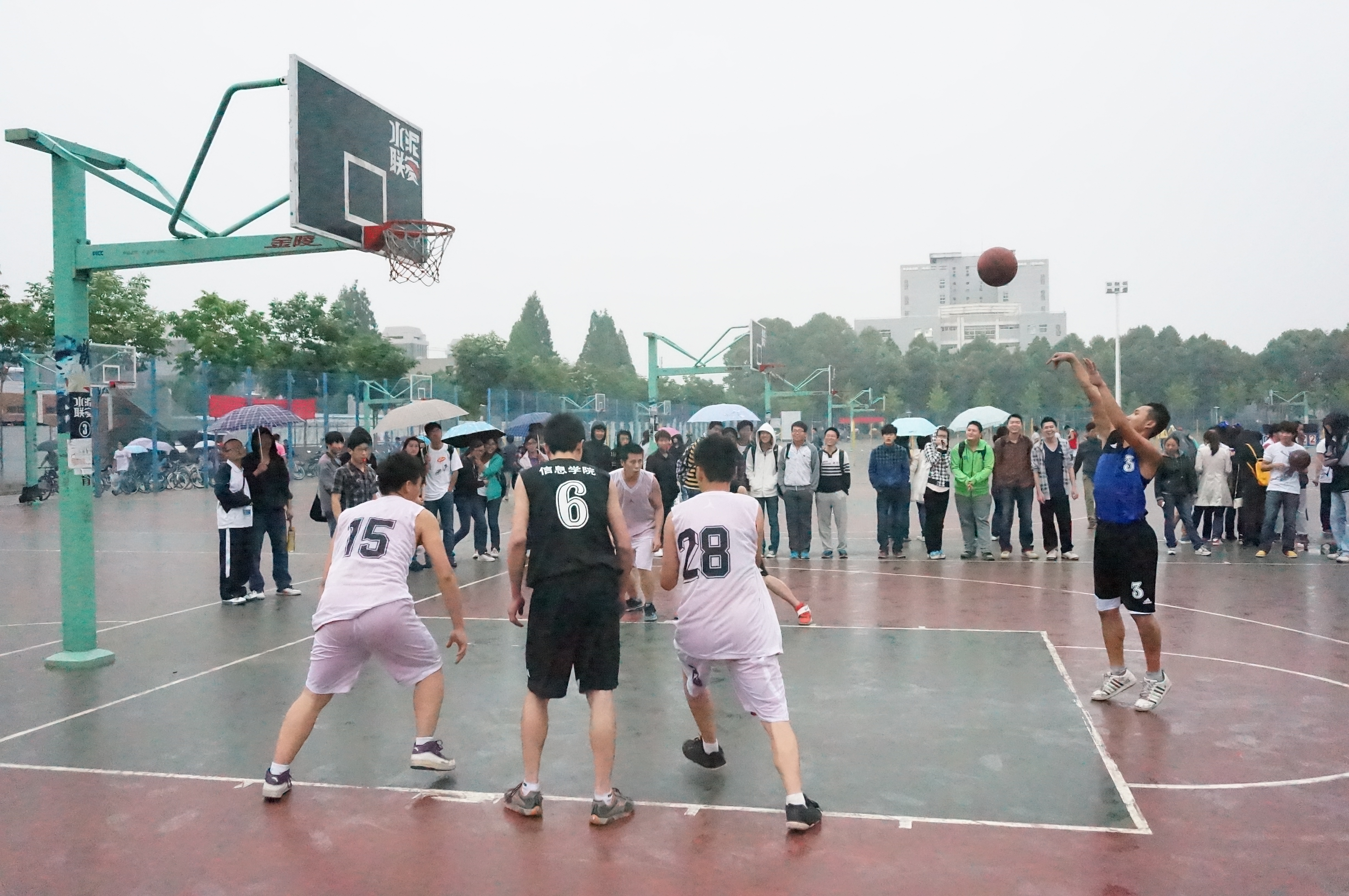 公司男子篮球队在院系间篮球赛中首场取胜