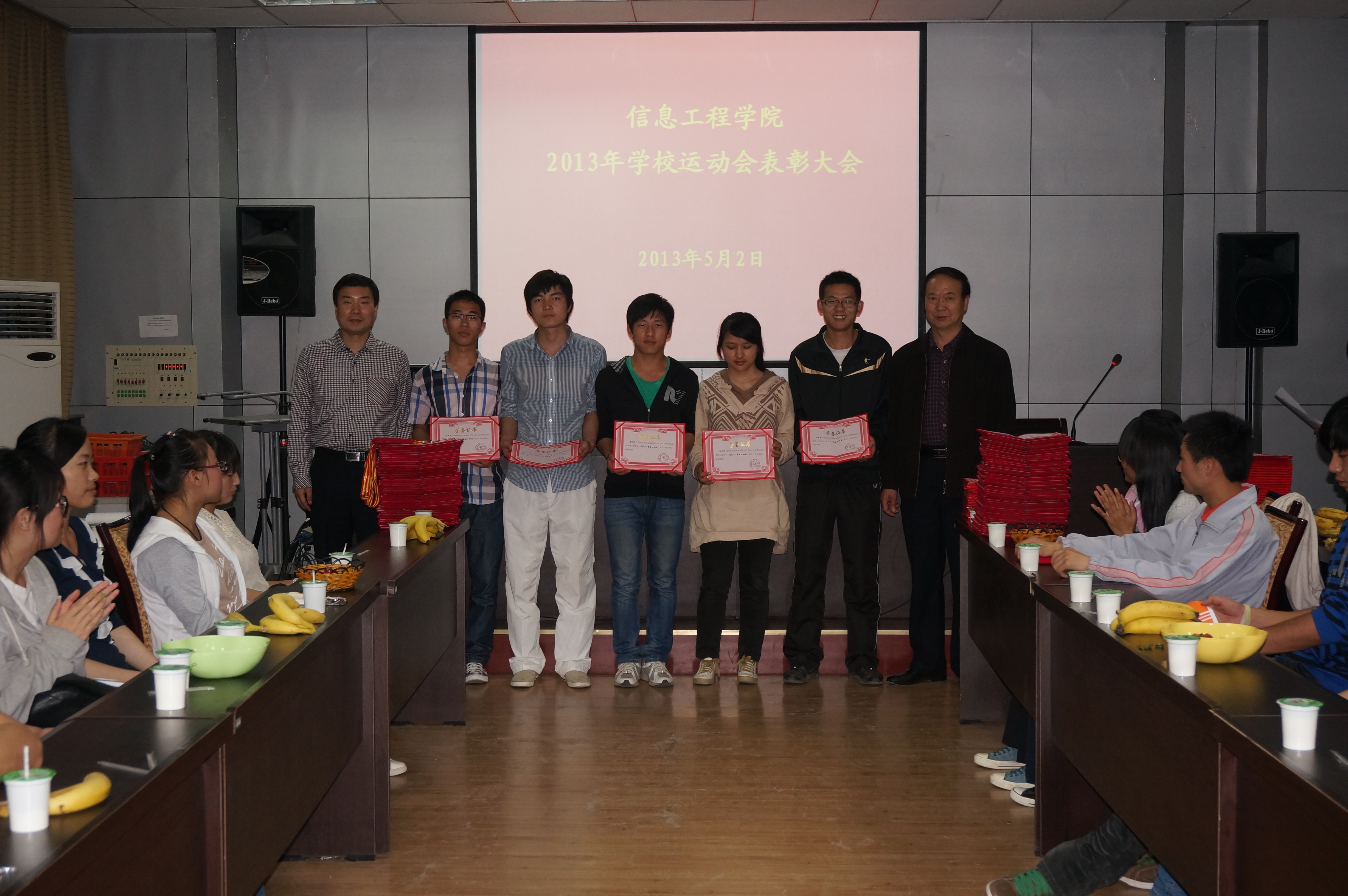 5月2日晚,beats365唯一官方网站在二层会议室举行校运动会表彰大会,对先进班集体、优秀运动员、优秀员工干部、优秀通讯员等做出表彰。公司党委书记樊世明,党委副书记何卫军出席会议,会议由院学工秘书王淑珍主持。