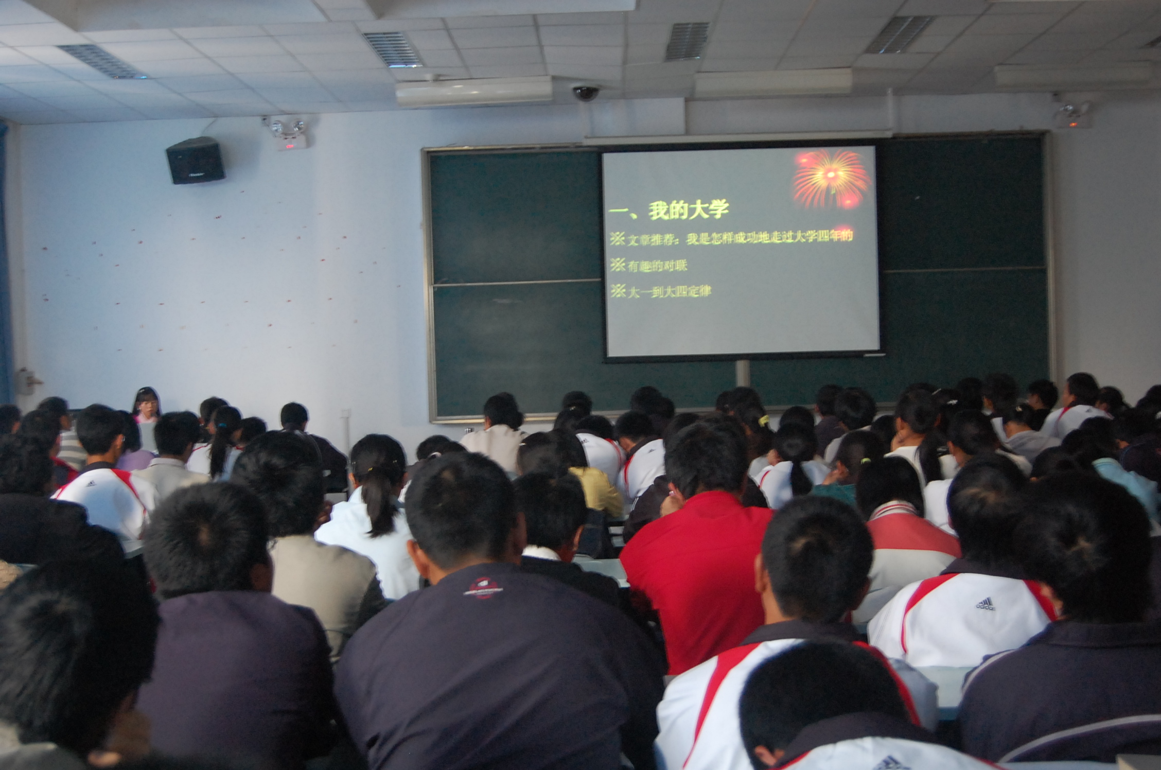 武老师就“新生在大学会遇到哪些问题,新生如何适应老员工活,老员工毕业后就业现状以及心理健康的维护方法” 等几个方面做了详细而深刻的讲解,她风趣幽默的讲授方式不时博得听众热烈的掌声,整个会场气氛轻松活跃。最后,武老师强调了做心理咨询的重要性,并留下咨询室的电话,鼓励大家遇到问题时,要尽快寻求心理帮助,尽快走出心理困境。