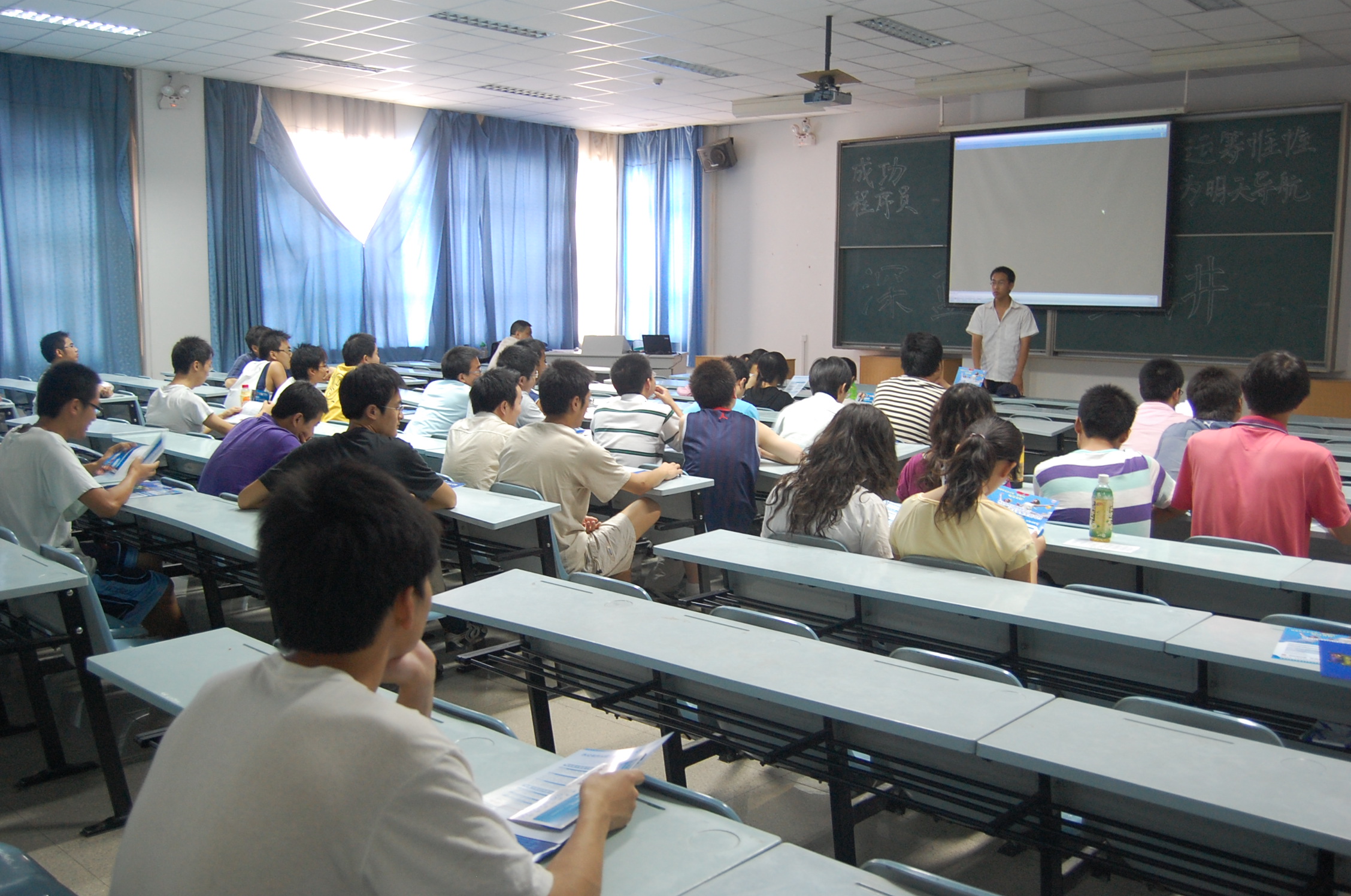 6月24日,西安深蓝软件有限公司技术总监南敏庚先生一行来beats365唯一官方网站招聘暑期实习生。公司在beats365唯一官方网站计算机教学中心多媒体教室进行了宣讲,向2006级同学介绍了深蓝软件公司的规模、发展方向、主要技术以及招聘实习生的要求等,希望同学们积极应聘实习生岗位,到深蓝软件发展。宣讲会结束后,南总监还与同学们进行了求职经验、计算机行业发展等方面的交流,回答了同学们普遍关心的问题。