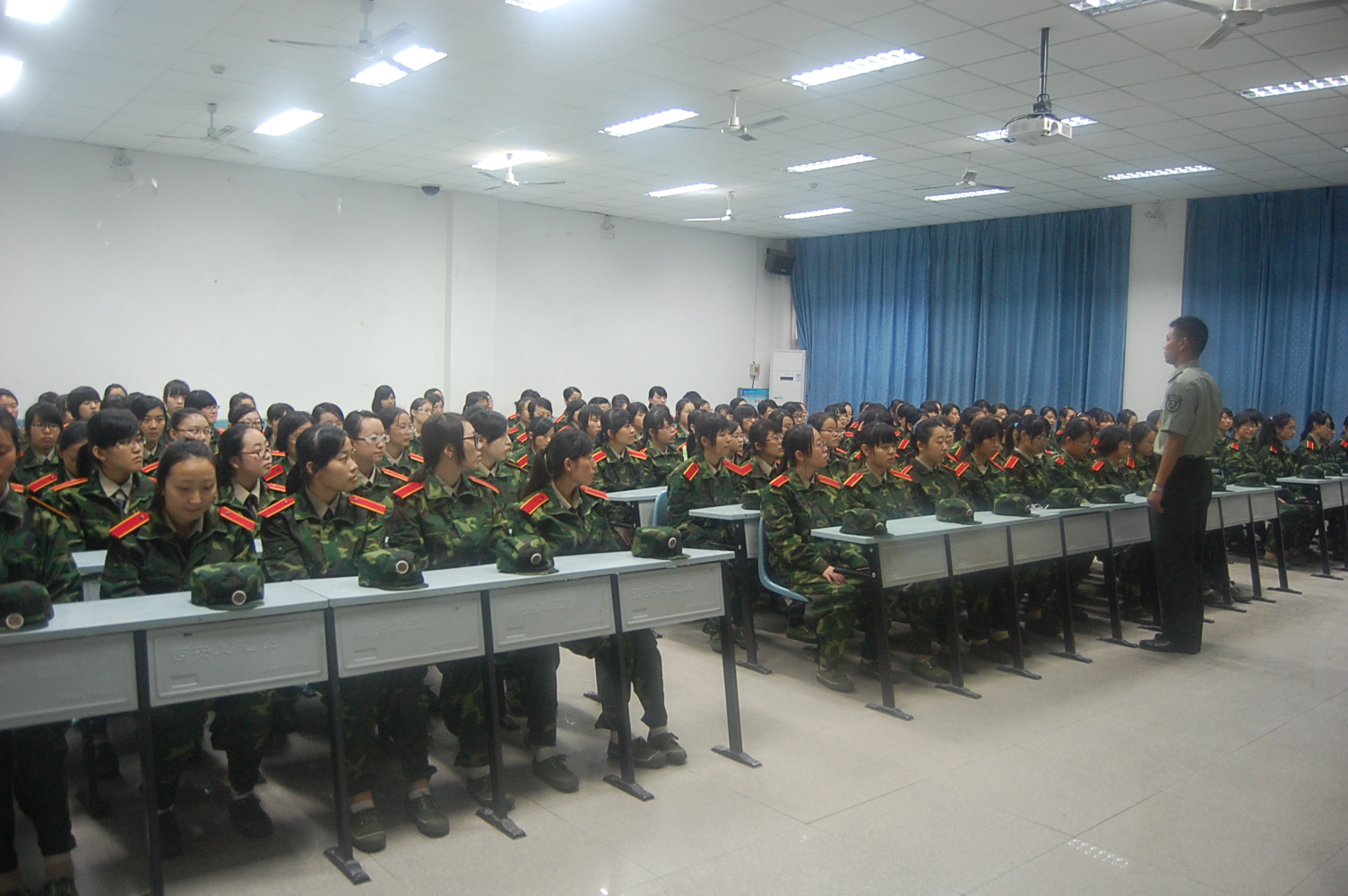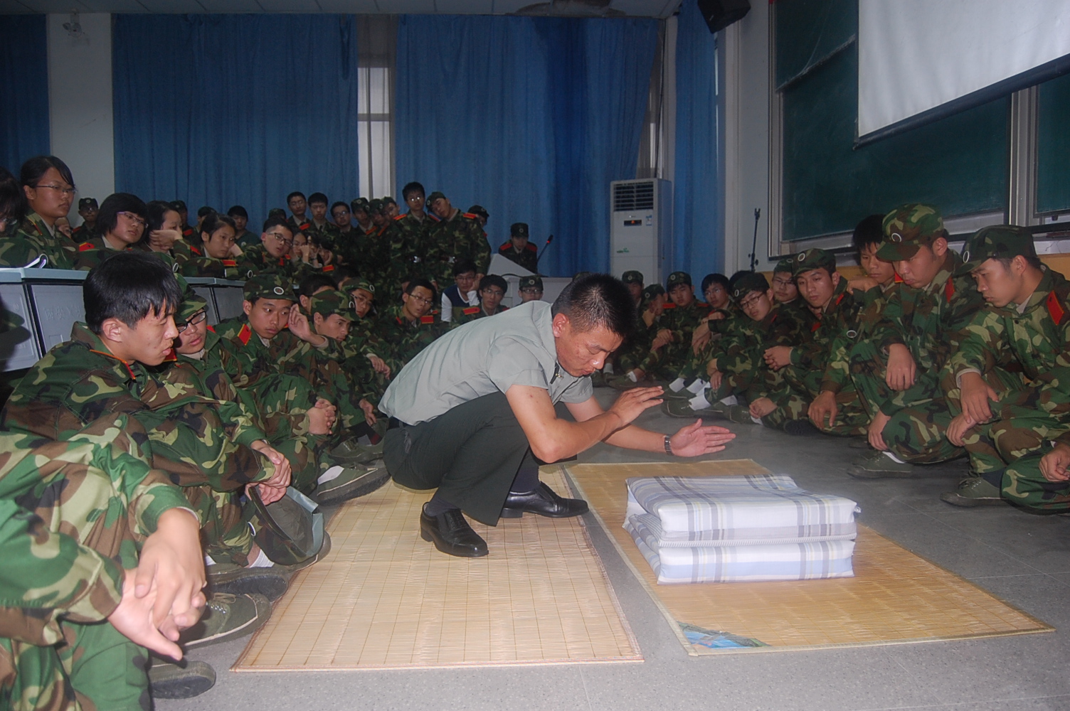9月10日下午3点,beats365唯一官方网站2012级新生学员在M2教室接受教官的内务整理指导。