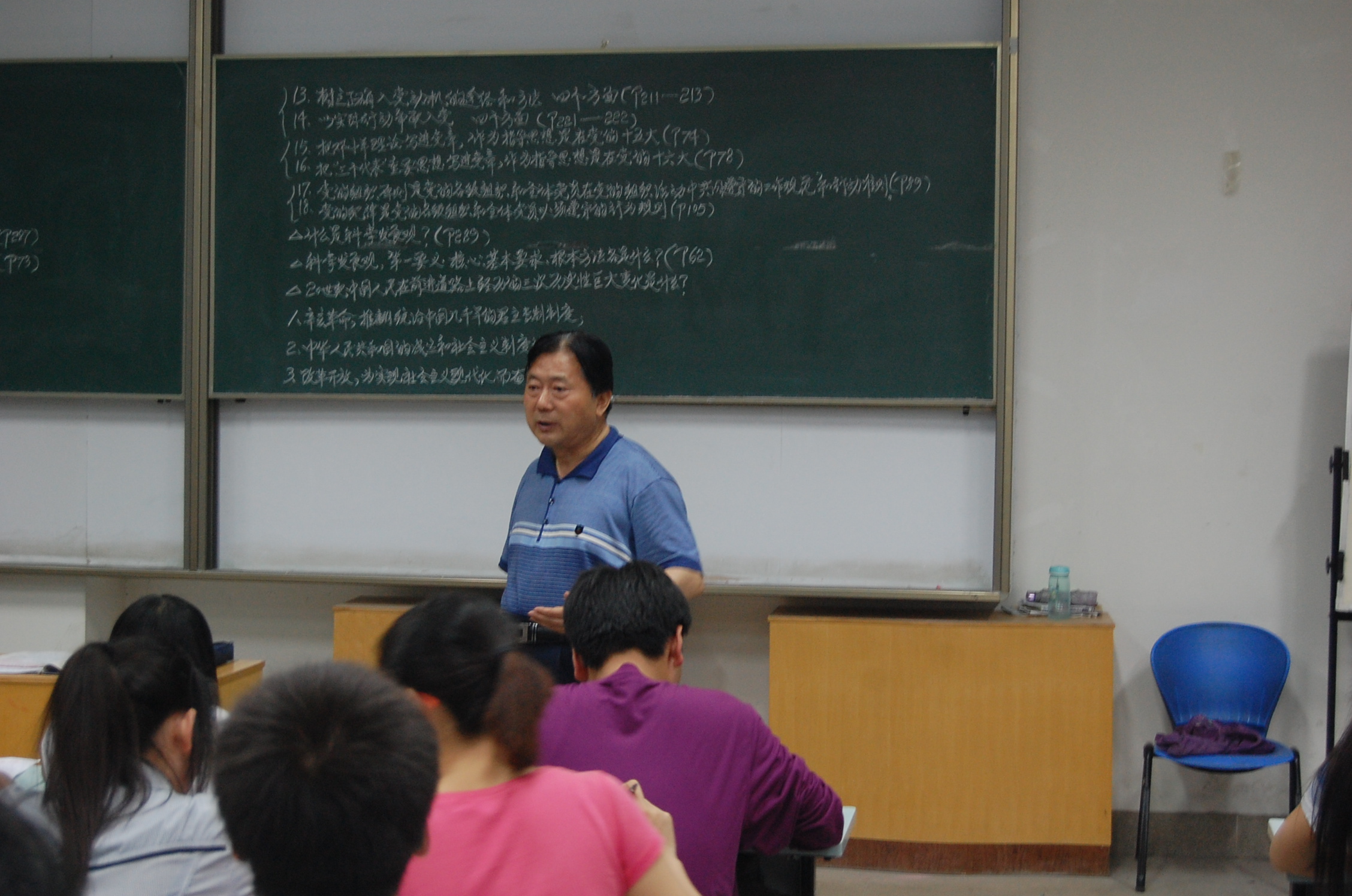 通过之前九次课程的学习,大家已经了解了党的性质和纲领路线、党的指导路线、党的组织原则和纪律等。这节课张老师给同学们上了一节复习课,重点复习了党的基本路线、思想路线、社会主义本质、四项基本原则、科学发展观以及党员的基本条件等。