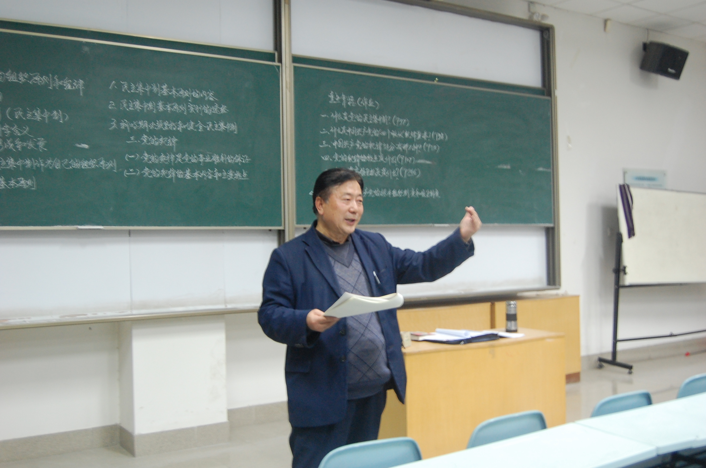 张老师讲述了以党的组织原则和纪律为主题的相关内容。他声情并茂地向同学们展现了伟大的中国共产党的严格纪律性。其中,具体地阐述了党的组织机构、民主集合制和等内容。在讲及一些较难懂的问题时,张老师幽默的举例,帮助同学们牢牢记住了深刻的道理;在讲及我党的规律原则,张老师的严肃和对党的尊敬,让我们深深感受的到了老一辈革命先辈的不易和艰辛。