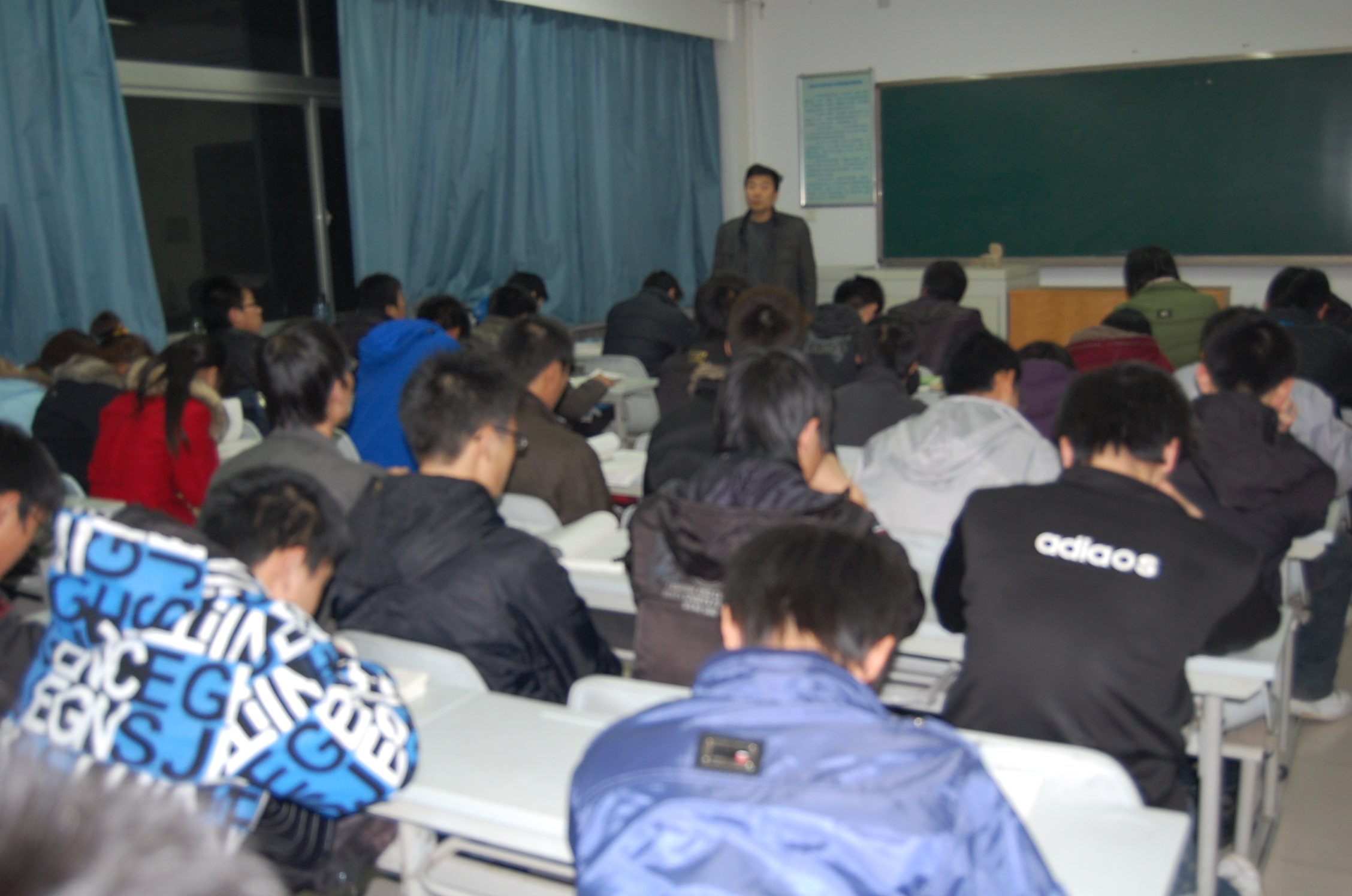 3月1日晚,信息公司党委副书记何卫军带领年级辅导员安中立来到8号教学楼,检查2009级员工晚自习情况。