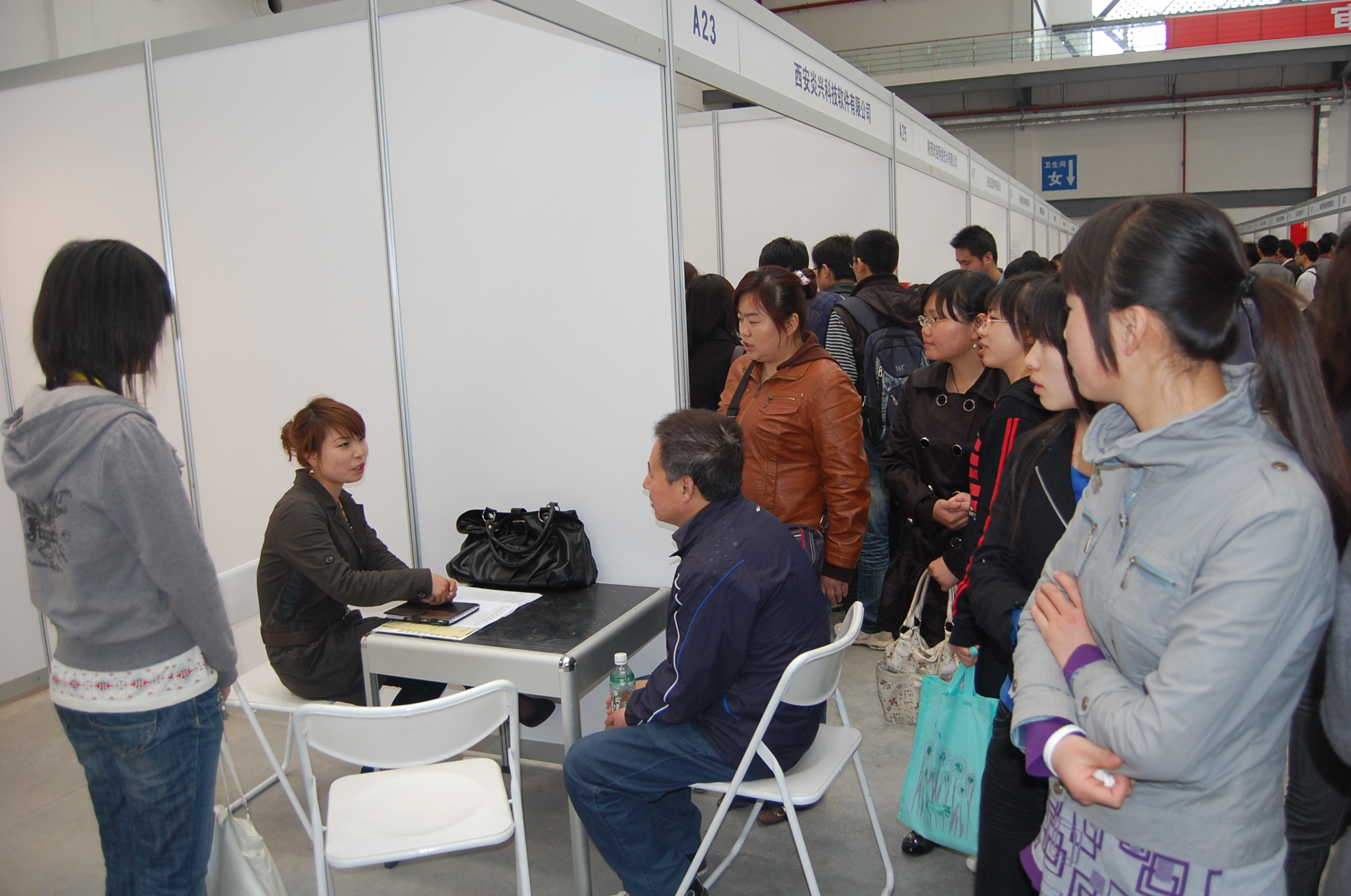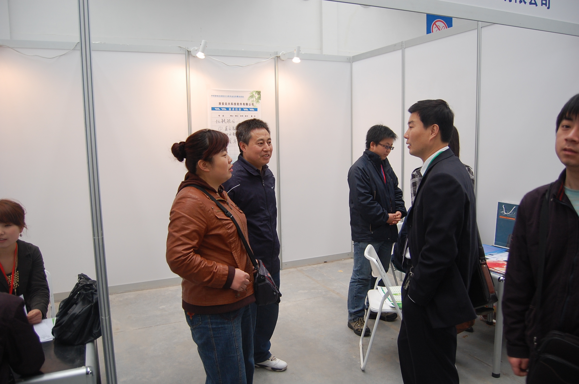 3月20日,公司在会展中心举行了2010届毕业生供需洽谈会,公司领导高度重视,精心准备,积极邀请用人单位,动员员工积极参加招聘会。上海电装技术有限公司、深圳滕邦票务有限公司、神州数码融信软件有限公司、文思信息软件技术有限公司、西安深蓝软件有限公司、西安软件园软件服务外包公司等18家单位参加了此次供需洽谈会,提供就业岗位70余个。