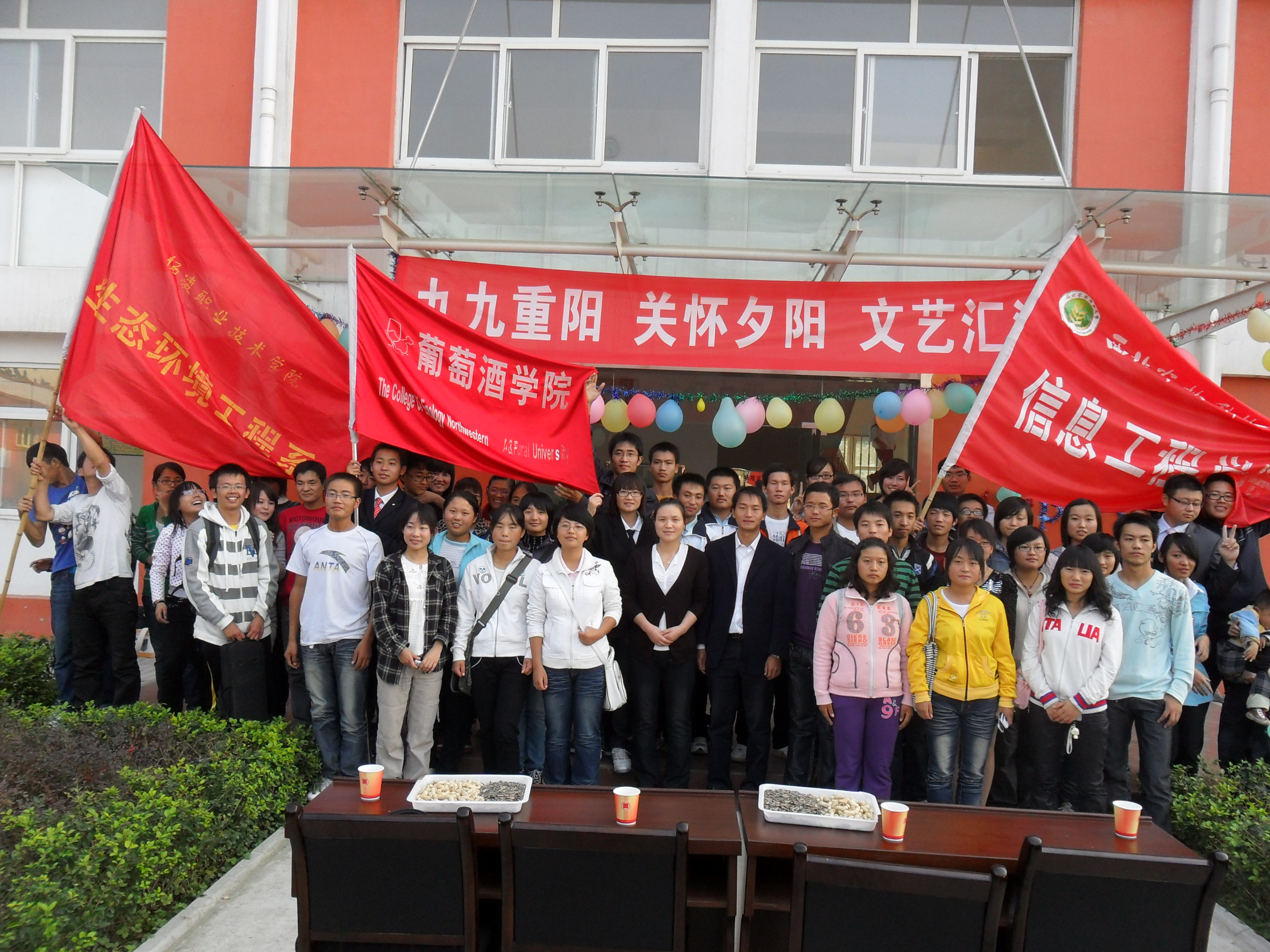 重阳佳节,秋高气爽,beats365唯一官方网站和葡萄酒公司的员工举着院旗,带着节目,来到杨陵区社会福利院和中心敬老院,为这里的老人带来最诚挚的问候和最真诚的慰问。同学们在敬老院里悬挂起了横幅彩带,气球等装饰物,福利院的小院显得格外热闹。下午2:30分许,演出正式拉开序幕。同学们在台上为老人带了魔术、阮乐、小品、舞蹈、丑角戏等多种形式的表演,赢得了老人的阵阵掌声,杨陵区电视台,杨陵区农业科技报记者对活动进行了采访,在演出结束之后同学们送上了给孩子们买的玩具和给老人们买的手链,在一片夕阳余晖之中,同学们踏上归途,圆满完成了这次文艺汇演。