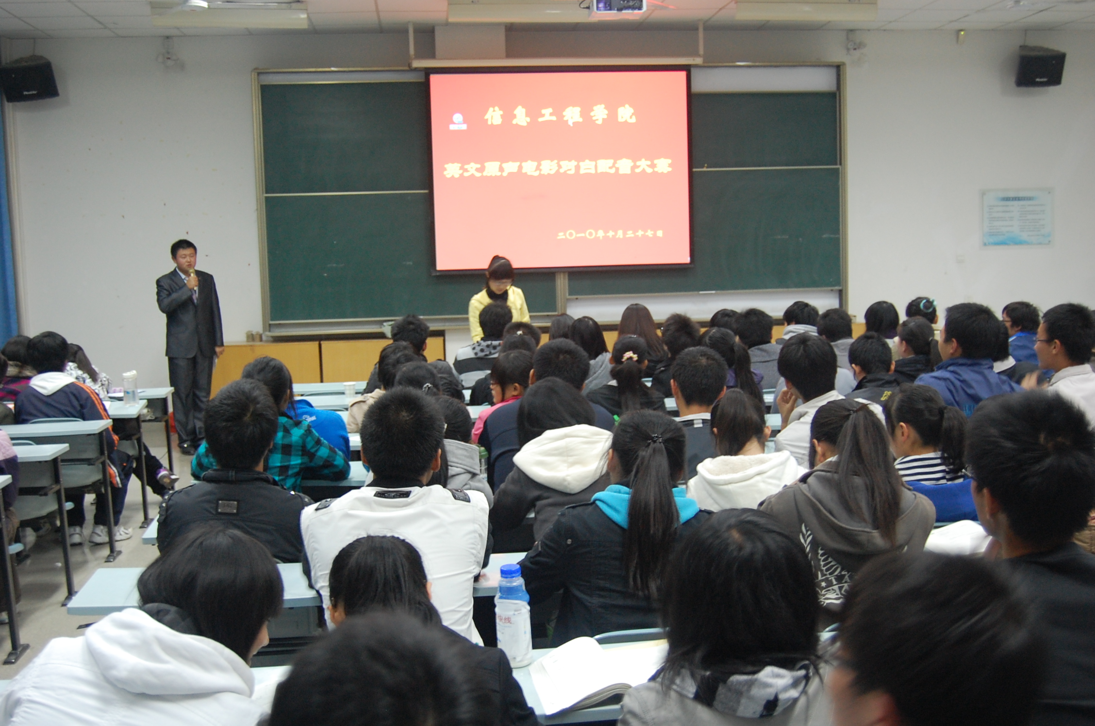 10月27日晚,beats365唯一官方网站在信工楼M2教室成功举办英文原声电影配音大赛。校学习部副部长张学治,外语系杨丹、王素素以及上届冠军琪非、辛彤学长等担任此次大赛的评委。