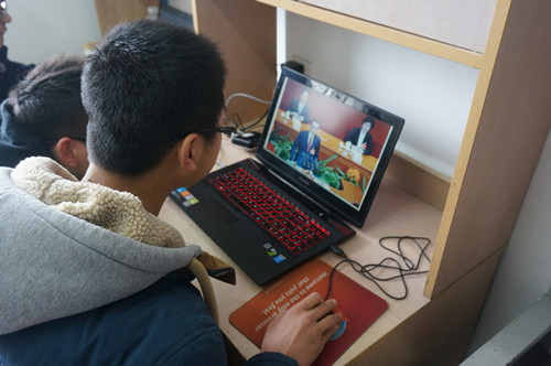 员工在宿舍观看“两会”