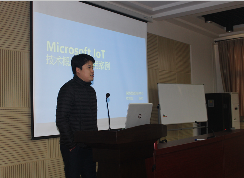 会上,微软创新中心技术部工作人员陈岩向同学们详细介绍了微软物联网的相关技术及应用信息,并结合自身的职场经验向同学们诠释了一个职场人应该具有的素质,建议同学们在校期间要抓住机会锻炼自己的组织、协调、策划、沟通等能力,为进入职场做好充分准备。
