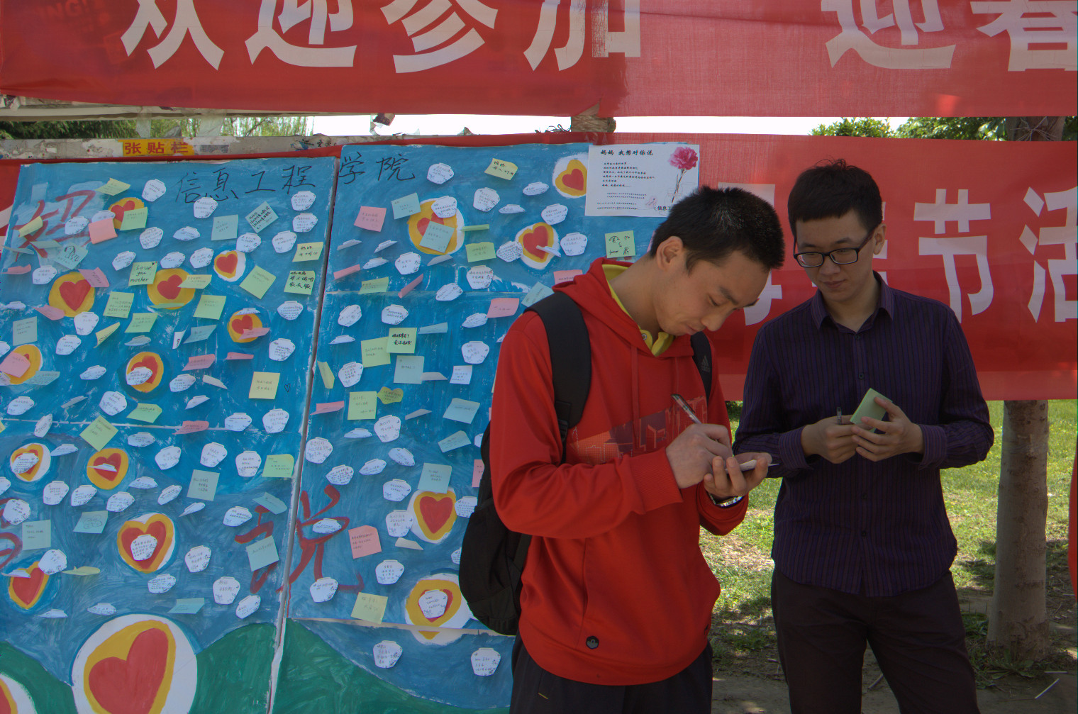 此次活动的主要形式为书写给母亲的寄语,将心中最想和母亲说的话记录下来并与大家分享,从而达到学会感恩、懂得回报。其间,组织活动的同学认真负责,不光完成既定任务,同时也将对于母亲的爱融入践行到此次活动中。参与活动的同学热情高涨,有的抒发对于母亲浓浓的感恩思念之情,有的为自己的青春冲动道歉悔恨,还有的回忆往昔寸草报春晖。